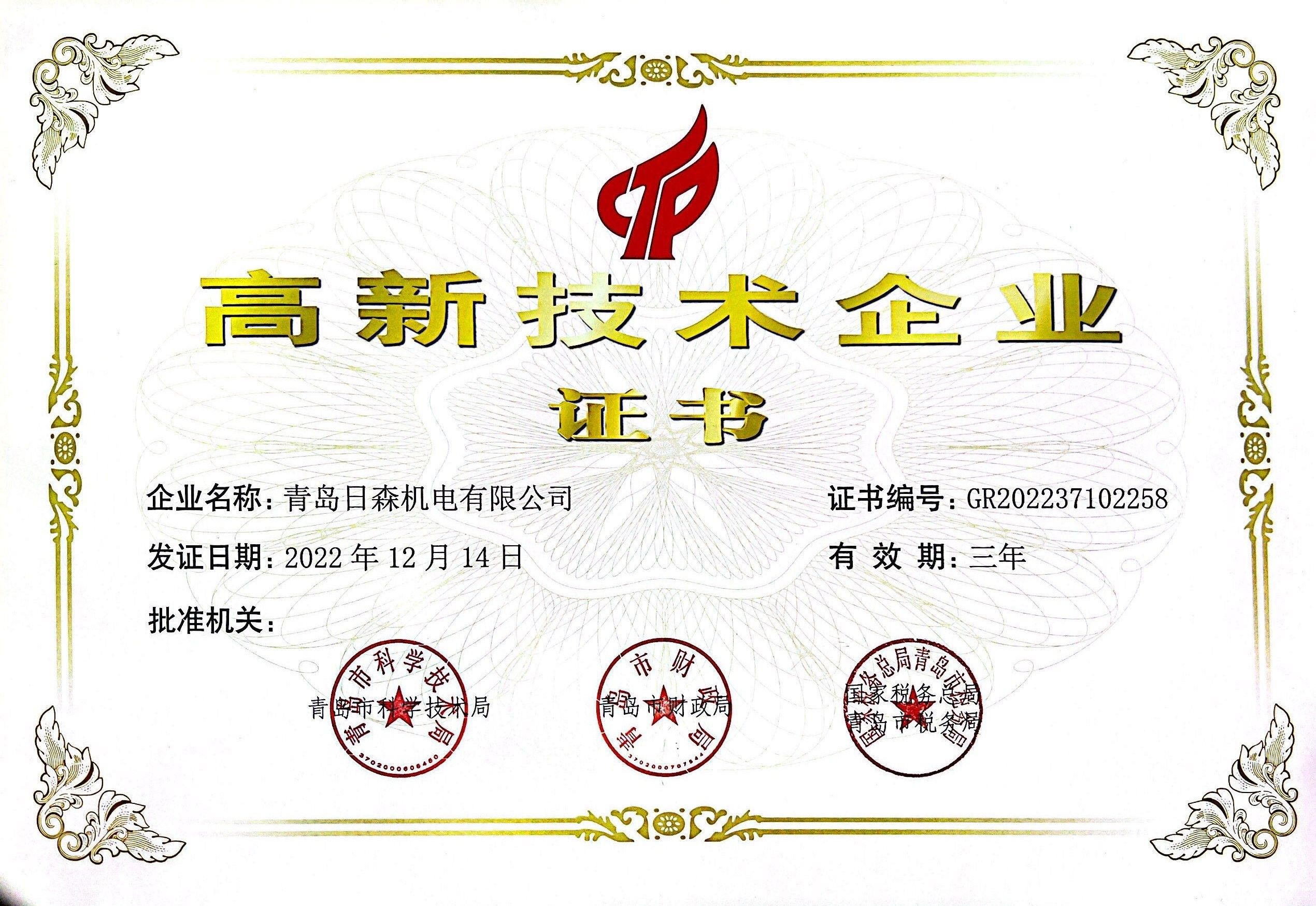 高新技術(shù)企業(yè)證書