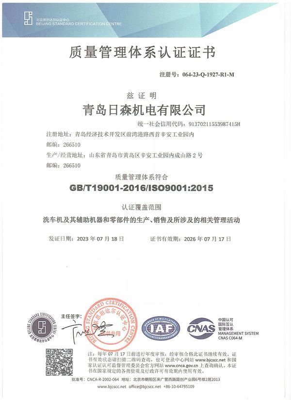 質(zhì)量管理體系認(rèn)證證書