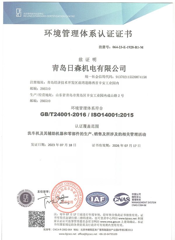 環(huán)境管理體系認(rèn)證證書