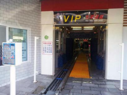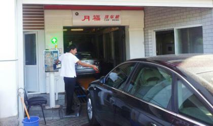 月福工作人員正在指揮待洗車輛駛入日森洗車機